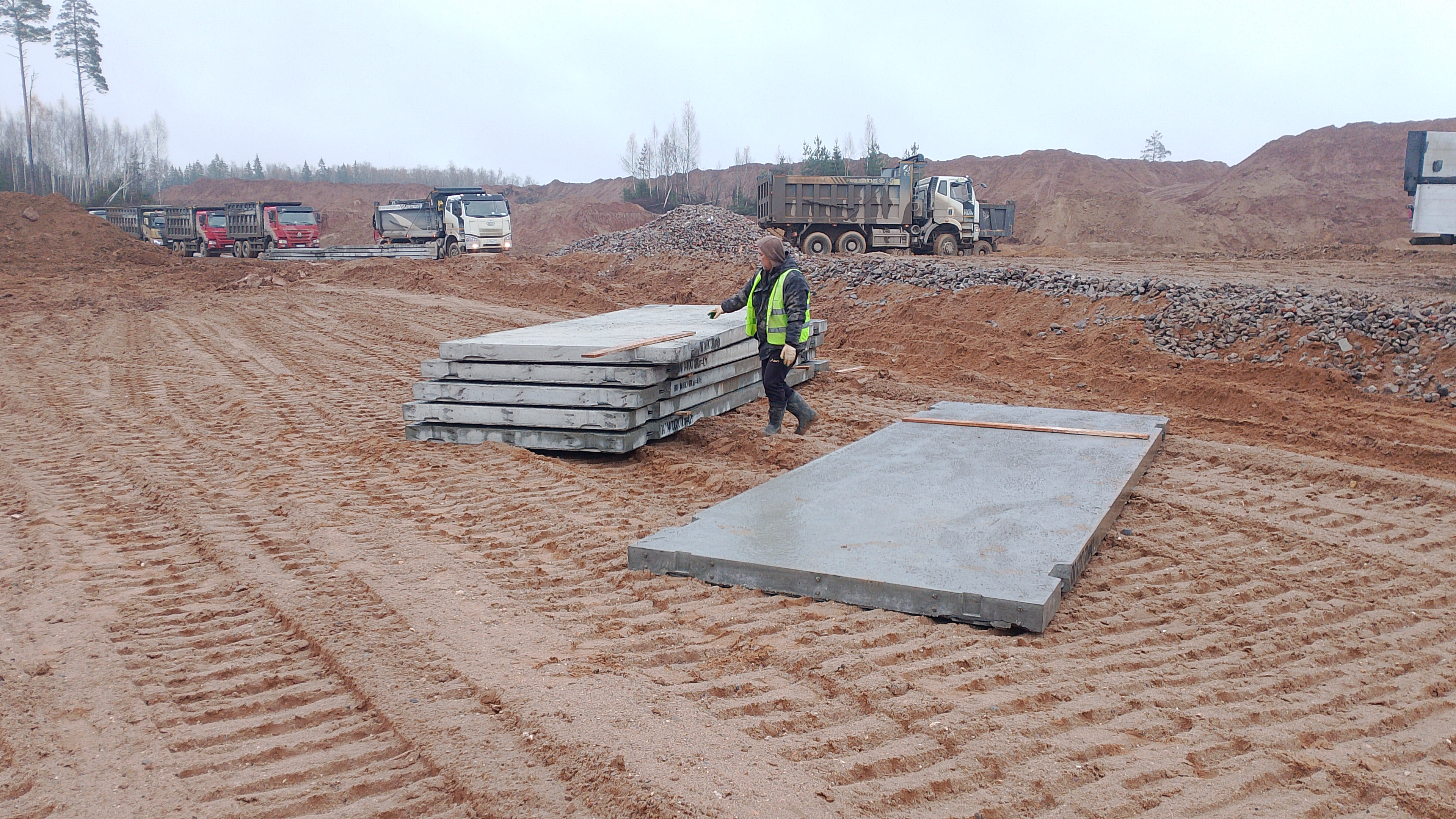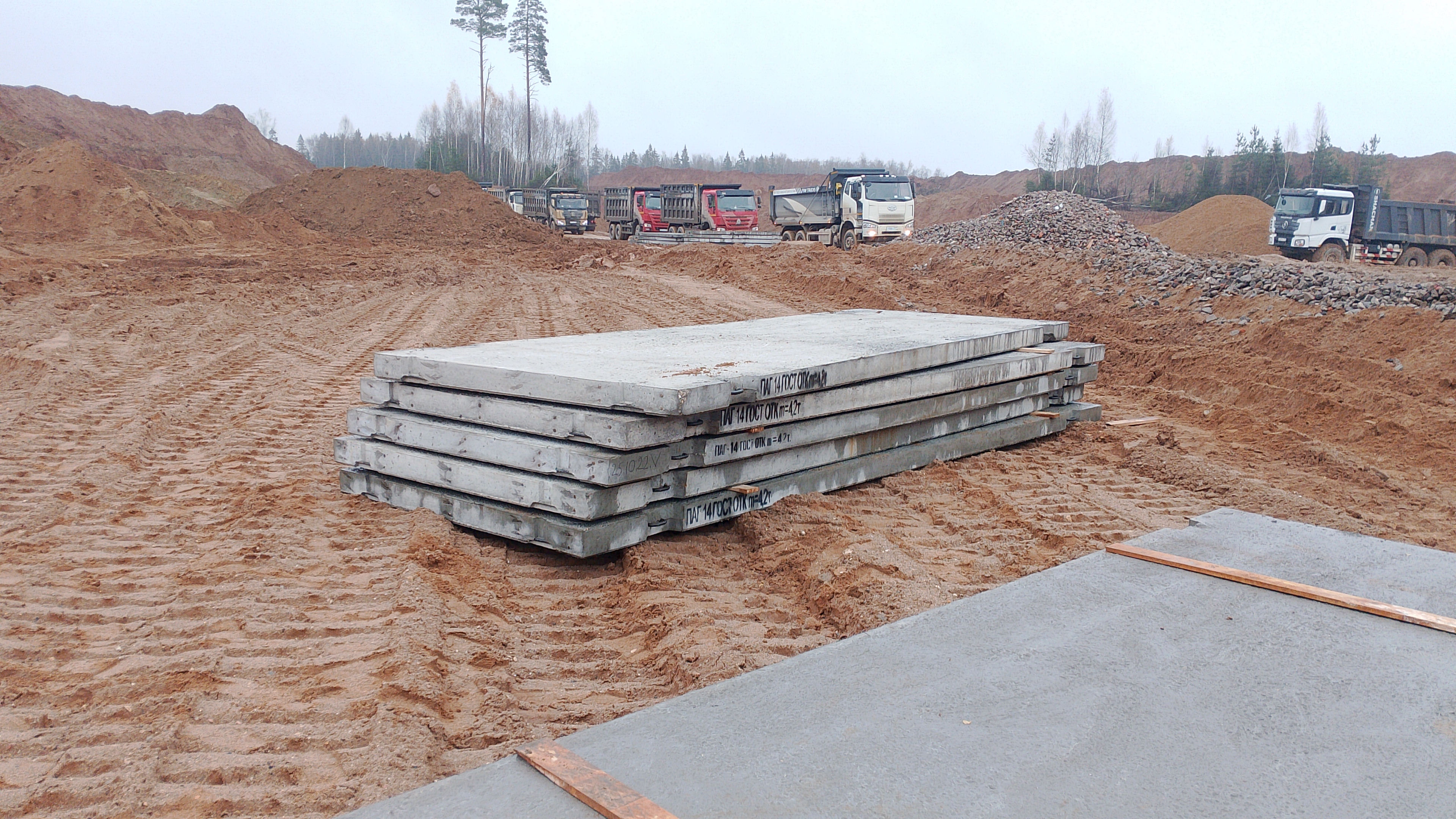 В качестве оптимального решения были выбраны аэродромные плиты ПАГ-14 ГОСТ. Их конструкция и характеристики полностью соответствуют требованиям по выдерживанию многотонных нагрузок от самосвалов и экскаваторов.